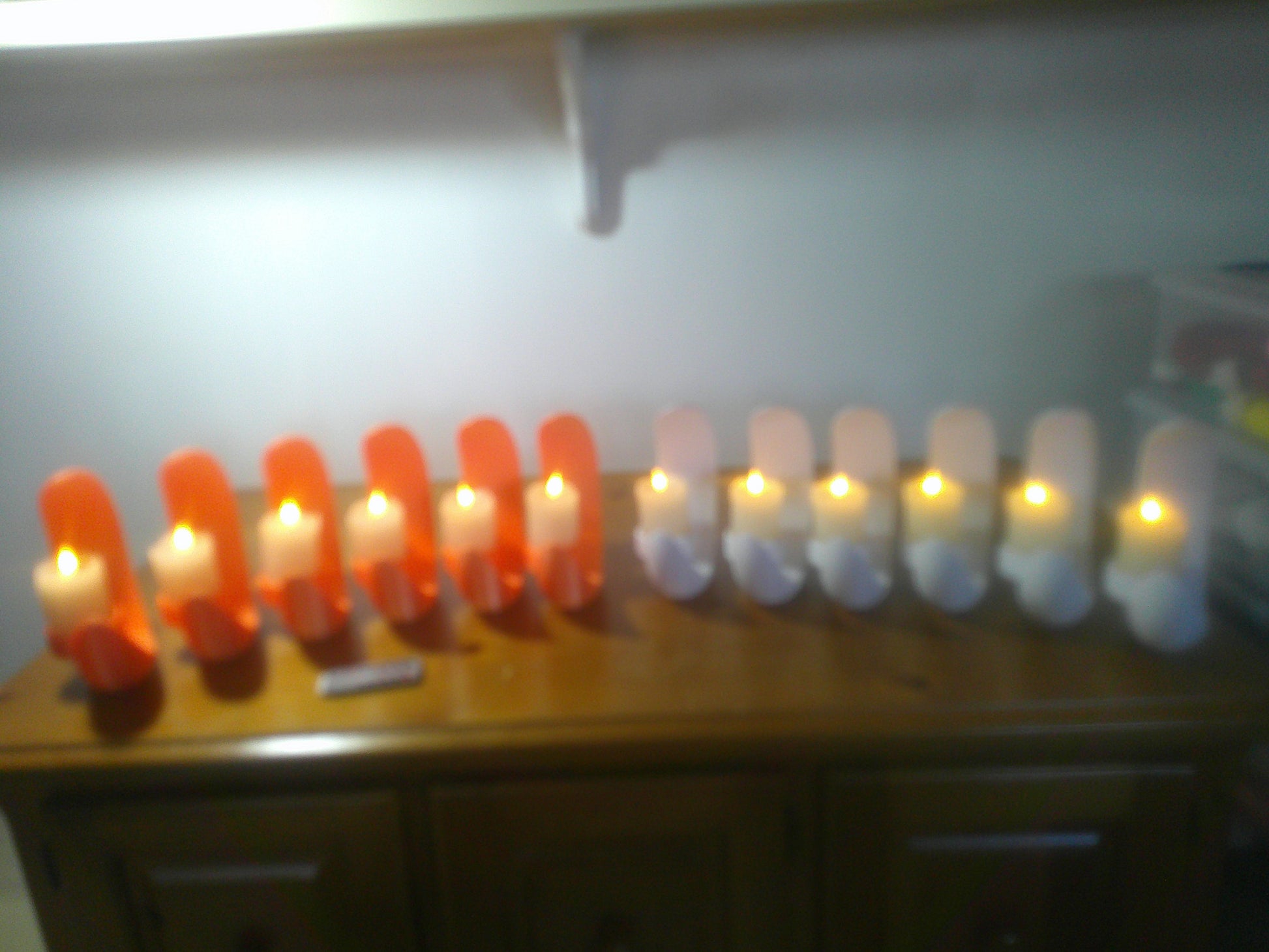 8x9x4 inch Quarter Moon with electric candle. Set of 6 with remote, turns off/on. Will sell separately, but without remote.